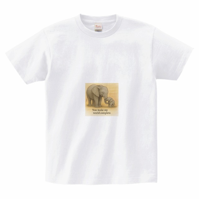 You Make My World Complete. ゾウ親子Tシャツ
